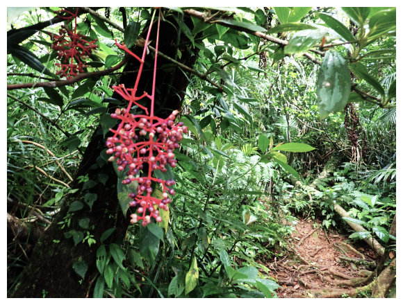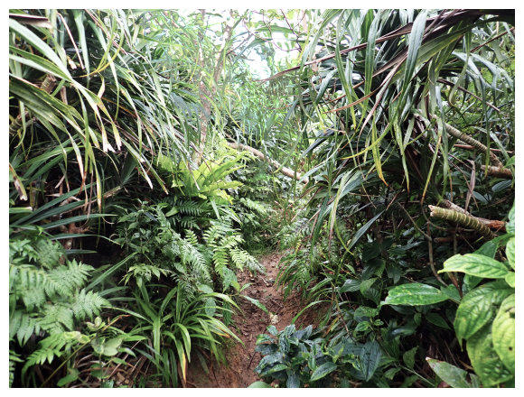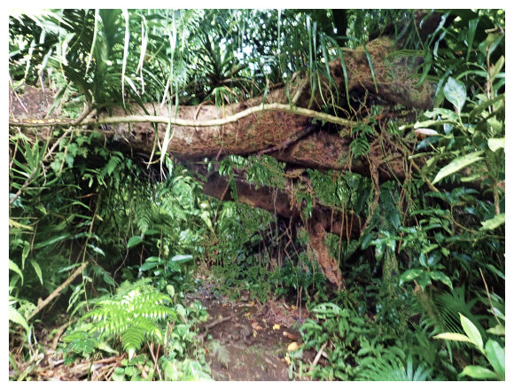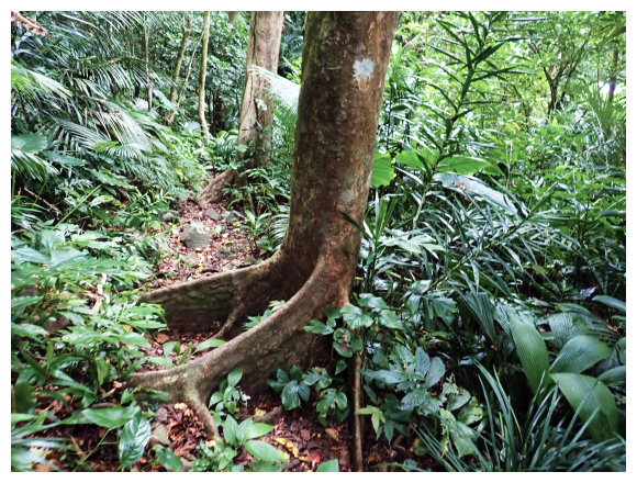 06:50 離開溪澗路在樹林下緩上,有多棵板根樹,也可看到長滿氣根的榕樹(阿凡達電影內「會走路的樹」) ,一路也有倒木要鑽要跨。