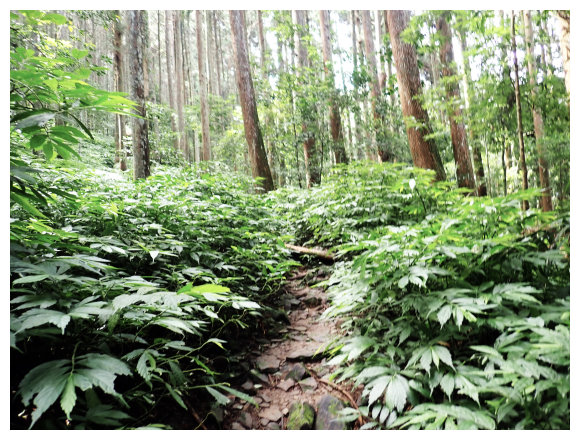 光天高山與向天湖山均自四個超級蓄水大水桶登山口起登,形成O形路線,繞一圈約二至三小時,海拔落差約400公尺,而全程幾乎走在柳杉森林裡,可說是一條絕佳的森林浴路線 ,但光天高山下到登山口卻是一條濕滑的下切路,要很小心的行走。