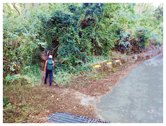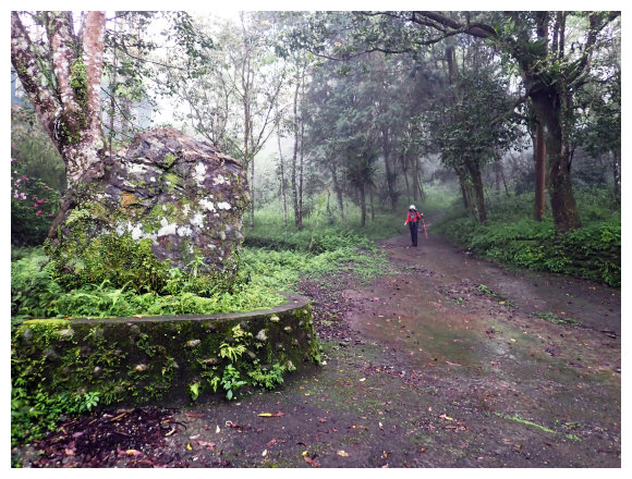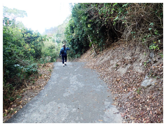 08:11 上至華林園巨石處停車場也是水泥車道終點,<大山支176>電力桿,這是一貫道教徒修身處所,要淨音,取巨石右側土石步道緩上。
