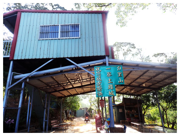 07:55 一寮土雞城。設有卡拉OK、冷熱飲與簡易盥洗室,水源充足,休 息10分鐘後順著水泥產業道路緩上。