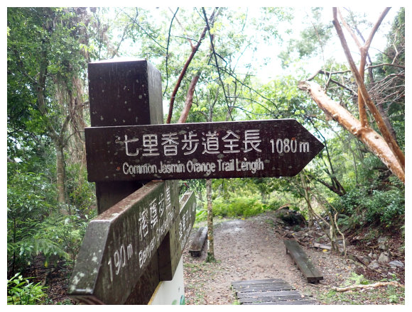 12:37 上到七里香步道岔路口,續上,<森林步道1K>哩程牌。