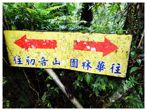 08:21 步道旁的<上往初音山&下往華林園>大指標牌,續行就有多段拉繩了。