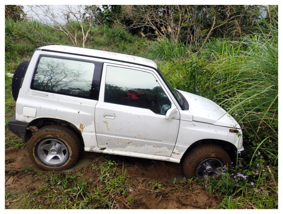 12:00 上到水泥產業道路終點,土質產業道路小下就取右順著電力桿走(看到一輛不聽勸的吉普車就滑落在路旁)。