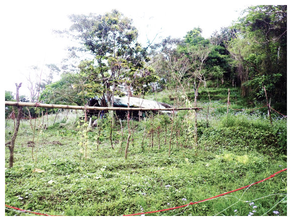 08:42 上接水泥產業道路,有間民舴,取右小行即左轉到到圍有電網的咖啡園,順電網旁的步徑續上3分鐘接水泥產業道路取左續行。