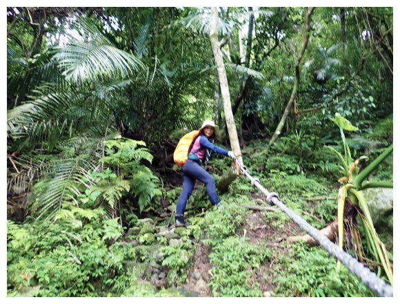 09:00 長達10分鐘的溪澗石頭拉繩多段,小心別滑落。