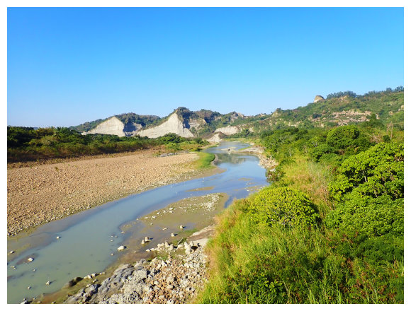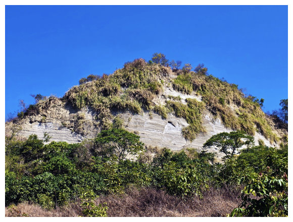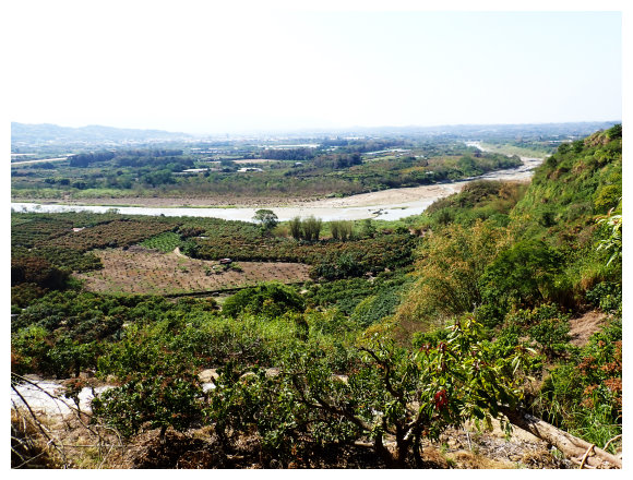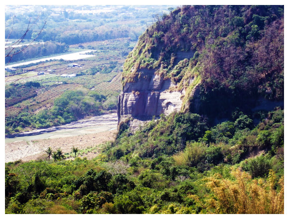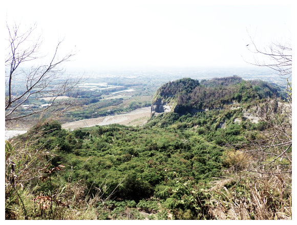 09:10 續行到加油站左取台3線到373K處左進南189線,到1K處的中正橋上可見左側藍鳥山指標,亦可見藍鳥山頂尖聳而凸顯的岩壁。