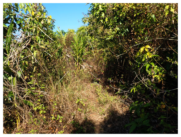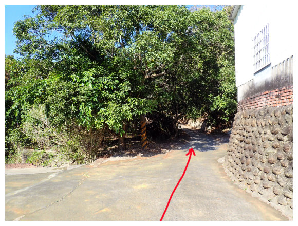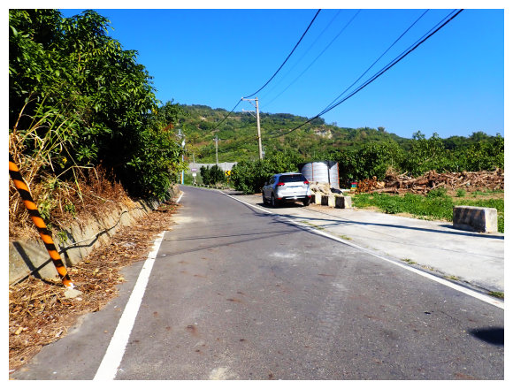09:15 續行約100公尺 的三叉路口,取左進入約500公尺的路旁三叉路口較寬處停車,左側有<請勿左轉進入/此路不通>警告牌及<台南市740800>路灯,續行斗六山暫不取。