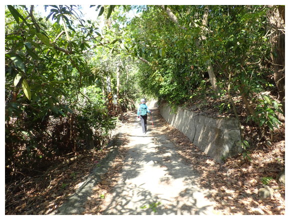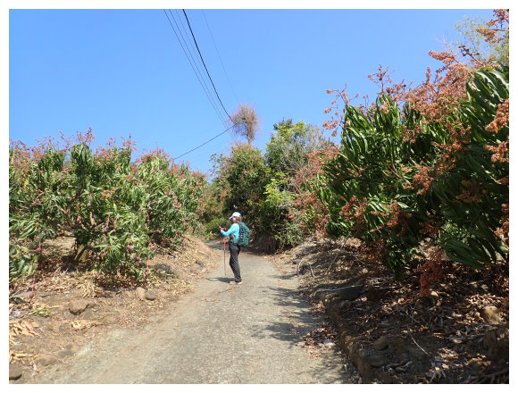 09:35 過芒果林產業道,後面仍有些民宅的三叉路口,取左側用石頭築起圍牆路走產業道路走就對了(斗六高分66右XX電桿號數累增),有陡上坡路段,偶可看見高聳的藍鳥山。