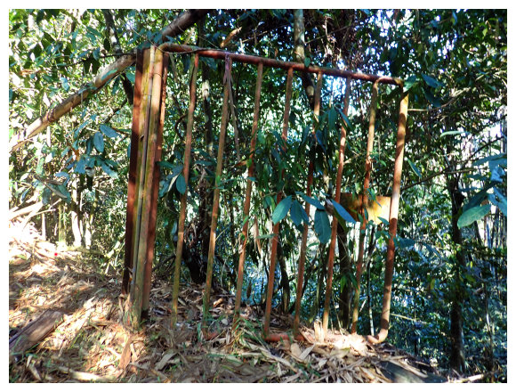 11:43 廢棄檳榔園工寮,後方連接有水泥蓄水池,通過包籜箭竹區再往左接上稜線高點,順路條續行下切。