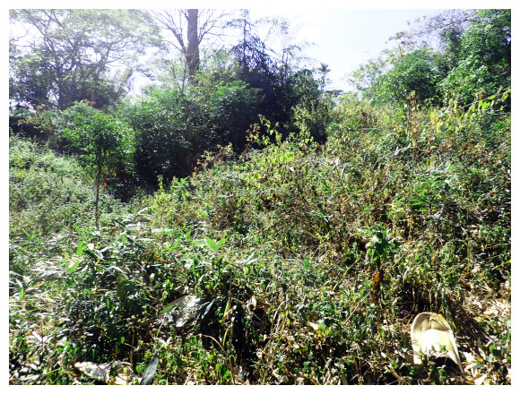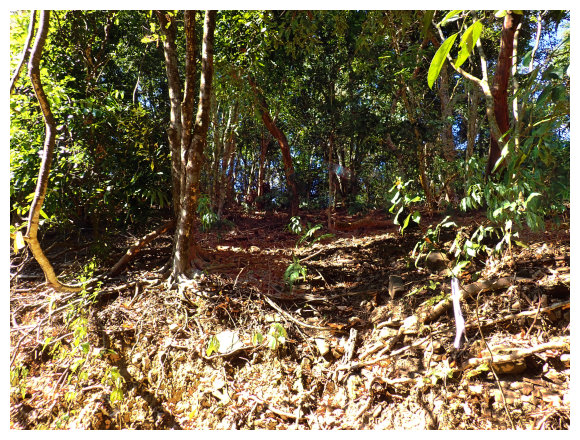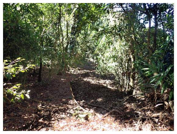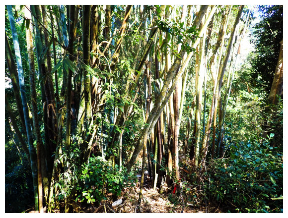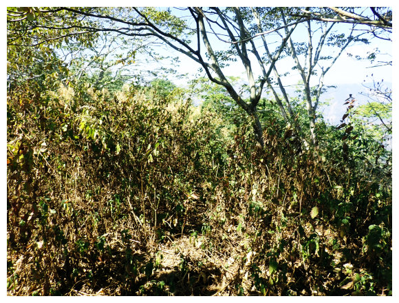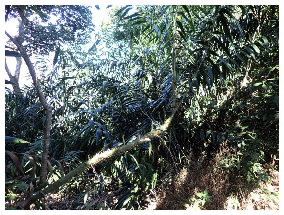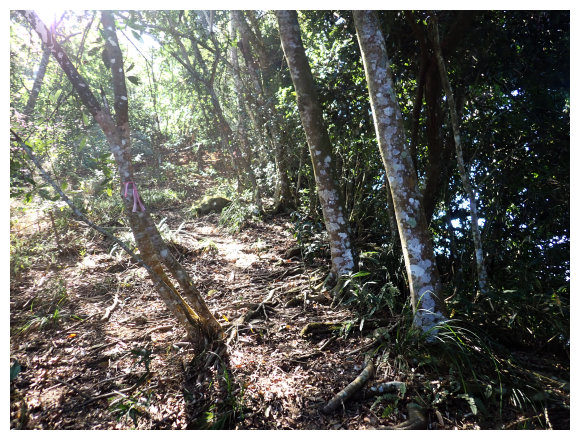 10:58 離農路右上滑斜坡,上到高點接農路,捨農路左上稜線,上稜後沿稜而上,路條可辨,偶經過粗竹欉、巨石 、黃藤區。