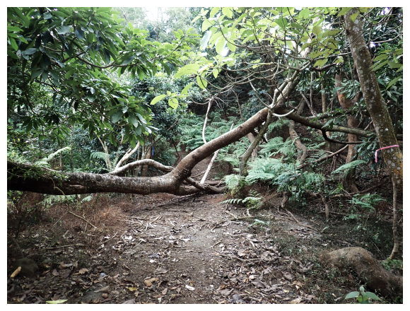 08:31 三叉路口,也是機車的停車點,取右跨過倒木續上。