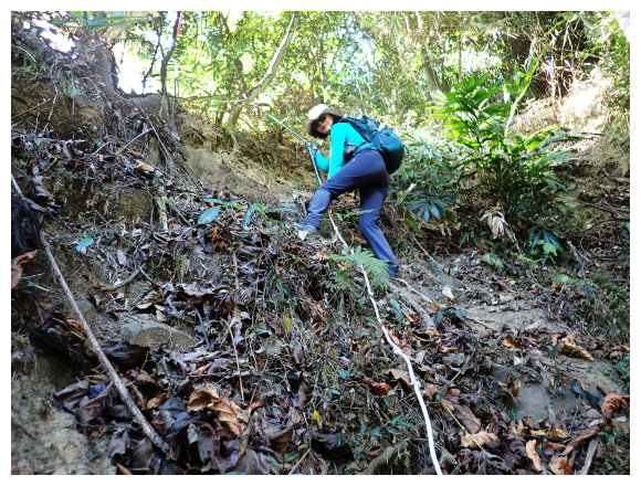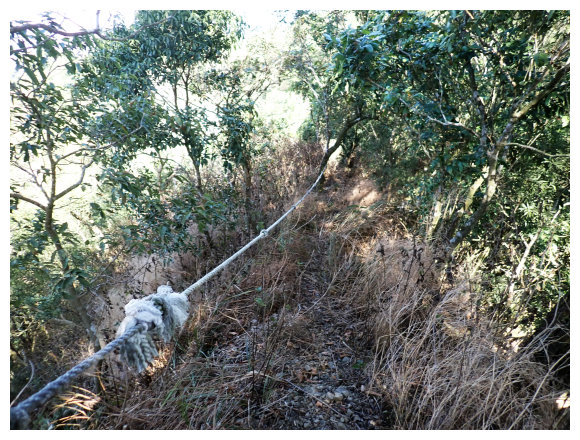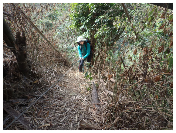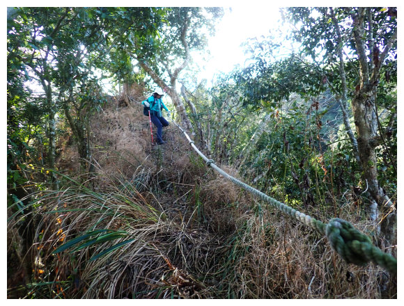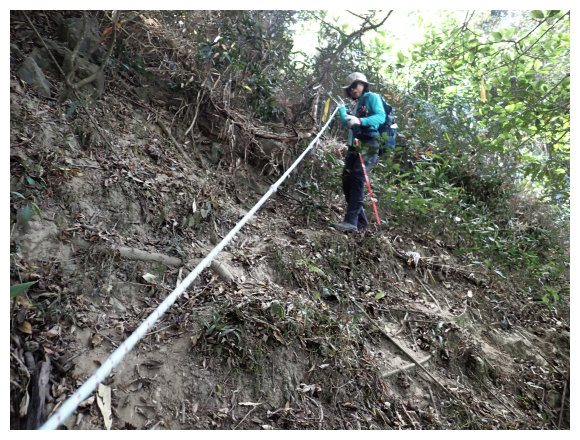 10:00 橫路頂山,休息5分鐘後,開始今天最難行的路段,多段拉繩急上下的滑土路,雨天絕不可行。
