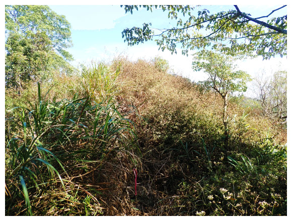 10:40 拉繩上稜,可看到下方的曾文溪,在草雜的稜線小上下而行。