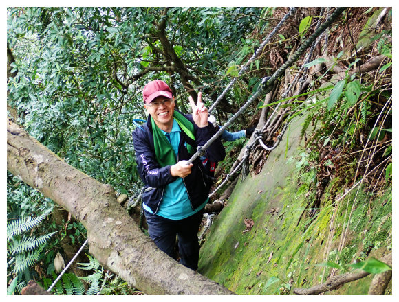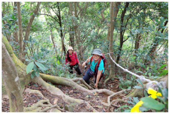 11:05 數段拉繩上抵金面山,可下瞰鴻禧山莊、高爾夫球場、金山面山、茄苳坑山區及遠眺大溪市區,團照後原路回程。